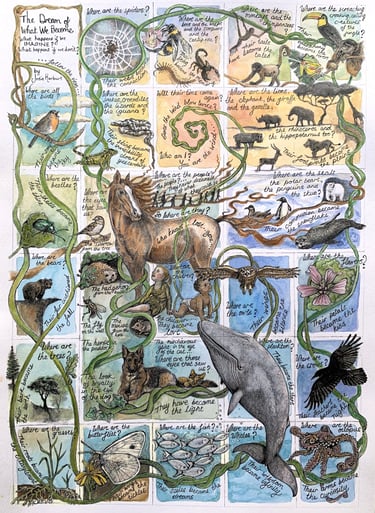 All the different creatures, wild and domesticated, big and small, aquatic and airy... all emerge onto this map of a dream. and of our potential.