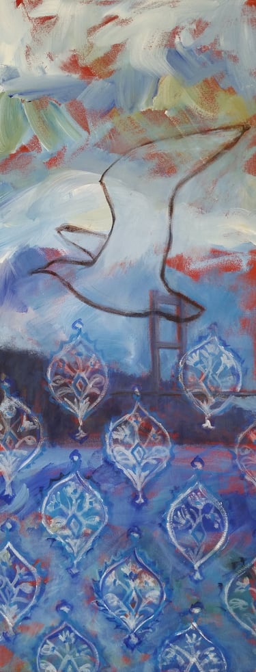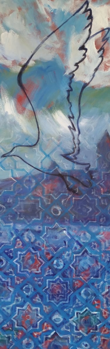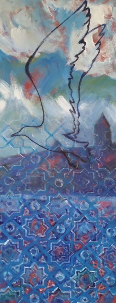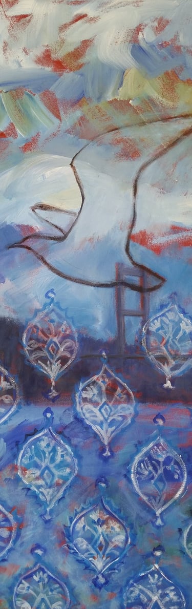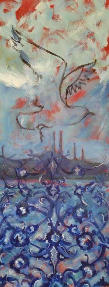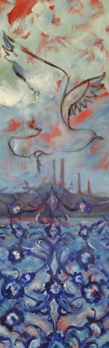 Seagulls over Istanbul. mixed media on canvas x 3. 100 x 40 cm