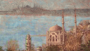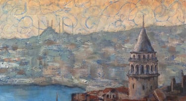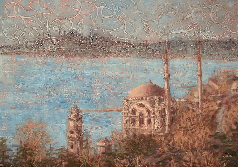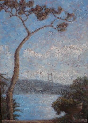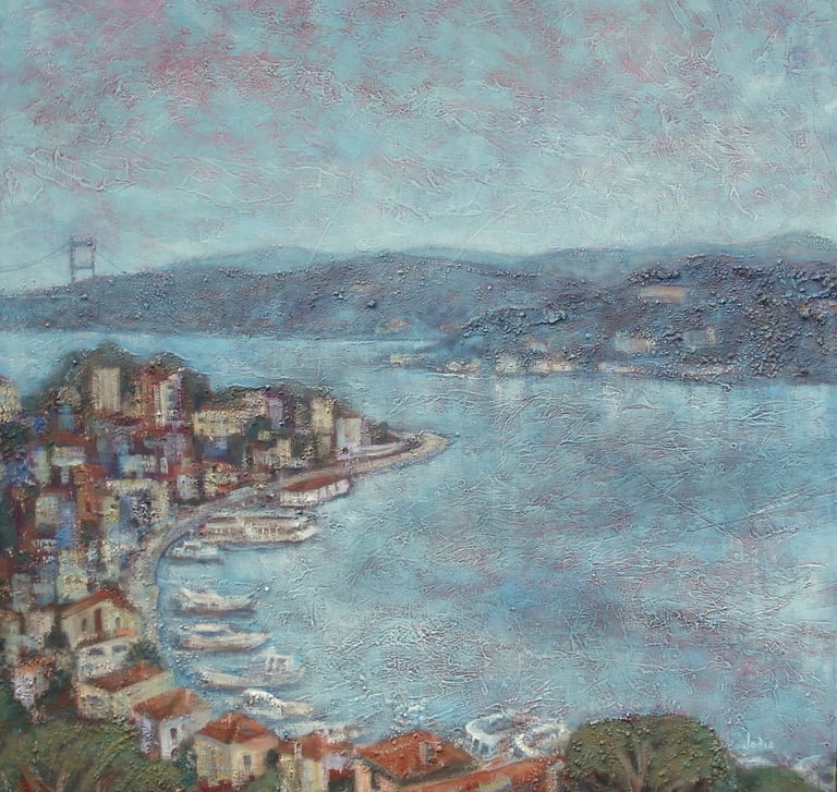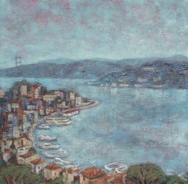 Bosphorus View. mixed media on canvas. 100 x 100 cm