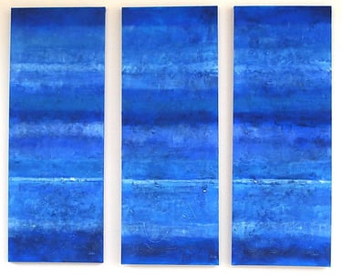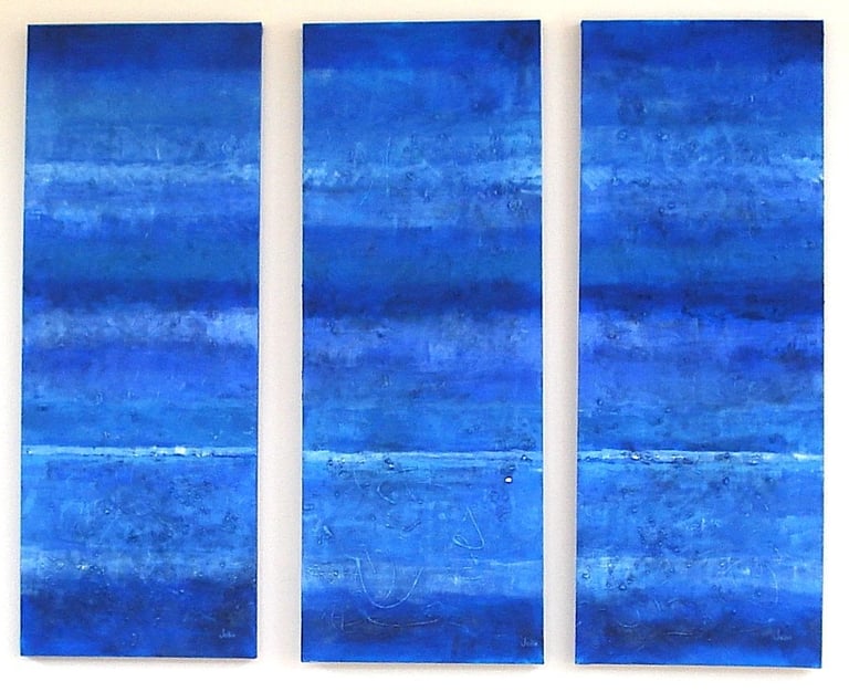 Blue. mixed media on canvas x 3. 150 x 40cm
