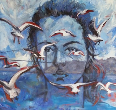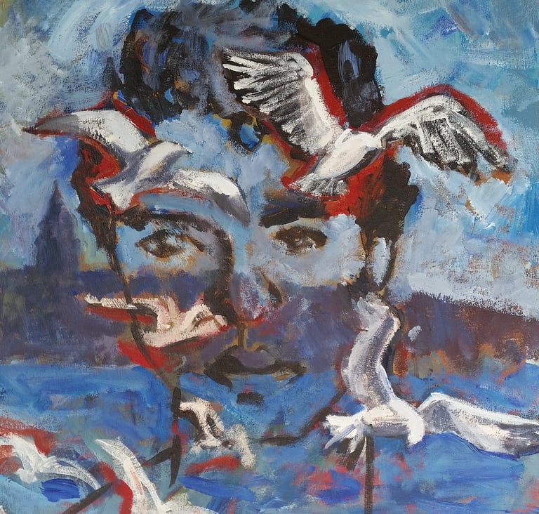 Son/Daughter & Seagulls over Istanbul. mixed media on canvas. both 50 x 50 cm