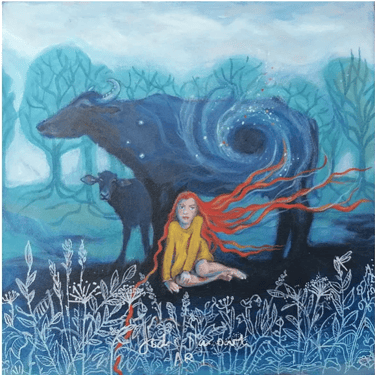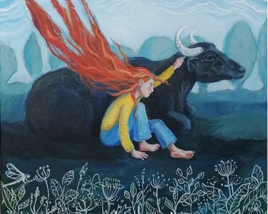 Water Buffalo & Girl - acrylic on canvas - 30 x 30
