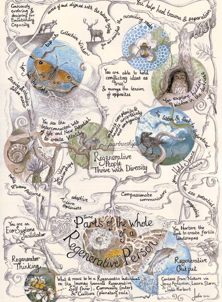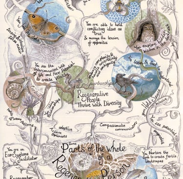 Here I integrated nature's wisdom with the learning from the 'Regenerator's Journey', a course run by Jenny Andersson and Laura Storm, the image is available on my Etsy Shop.