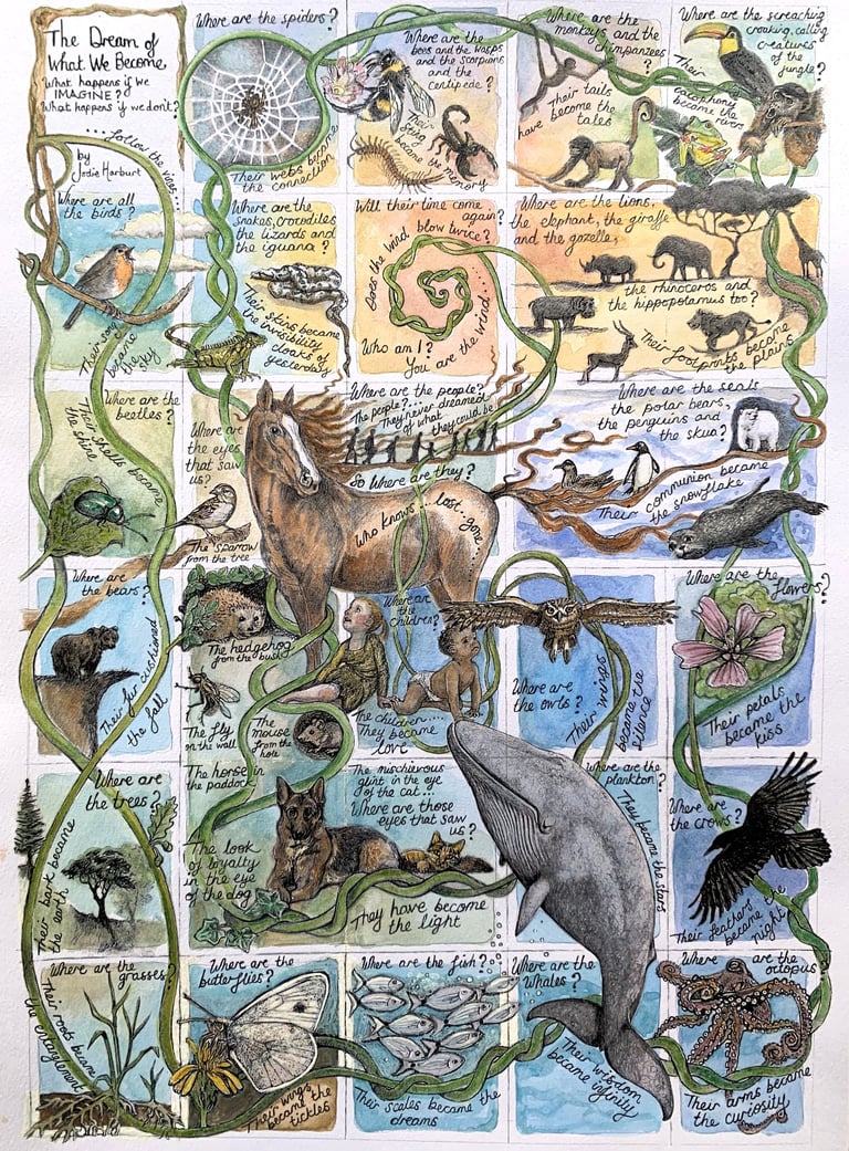 All the different creatures, wild and domesticated, big and small, aquatic and airy... all emerge onto this map of a dream. and of our potential.