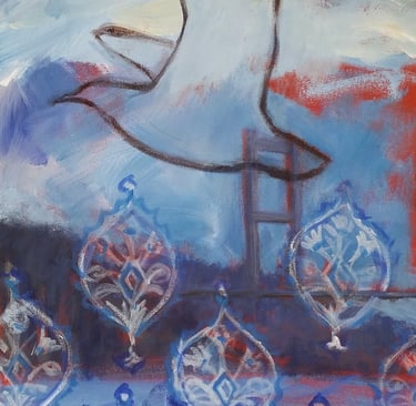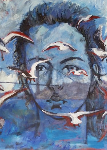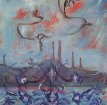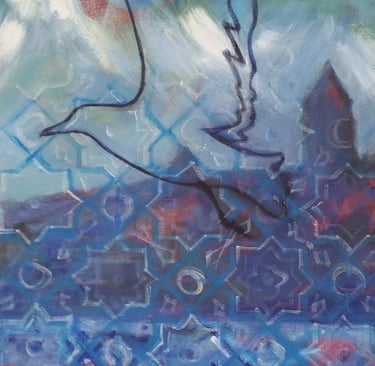 Son/Daughter & Seagulls over Istanbul. mixed media on canvas. both 50 x 50 cm