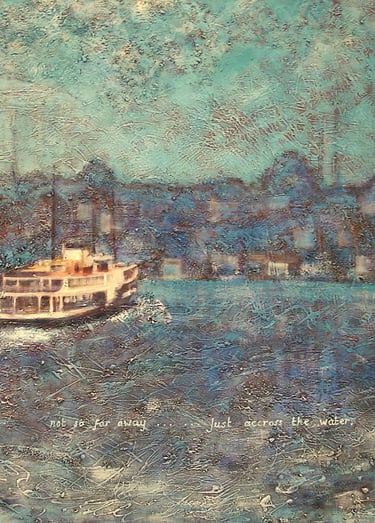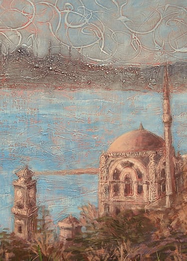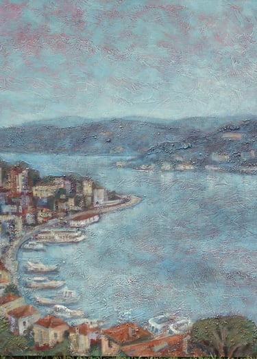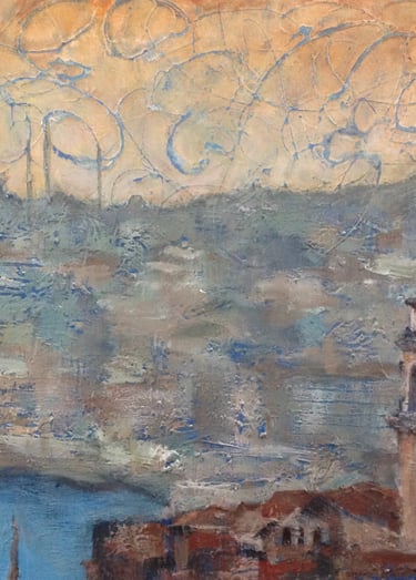 Bosphorus View. mixed media on canvas. 100 x 100 cm
